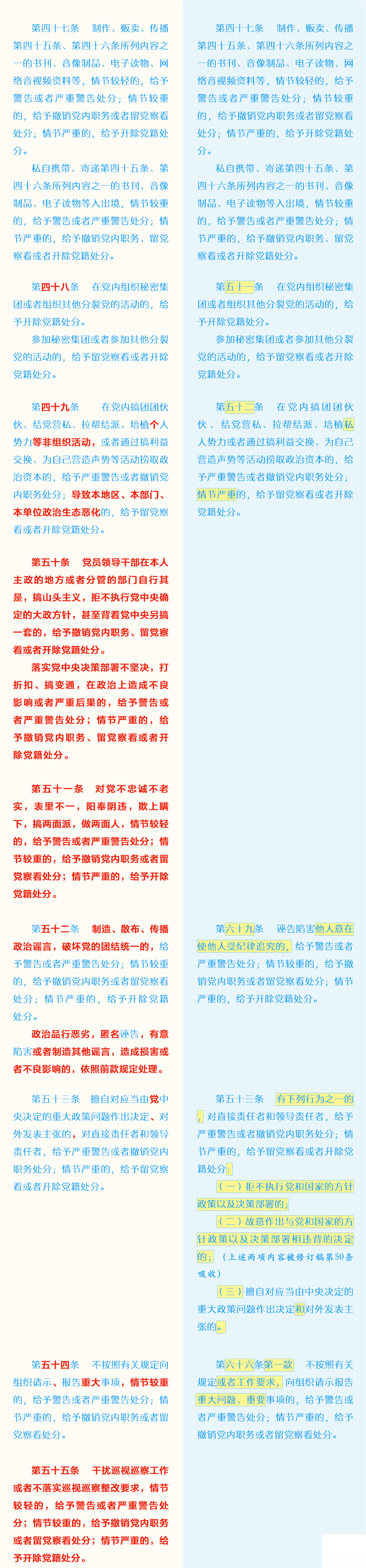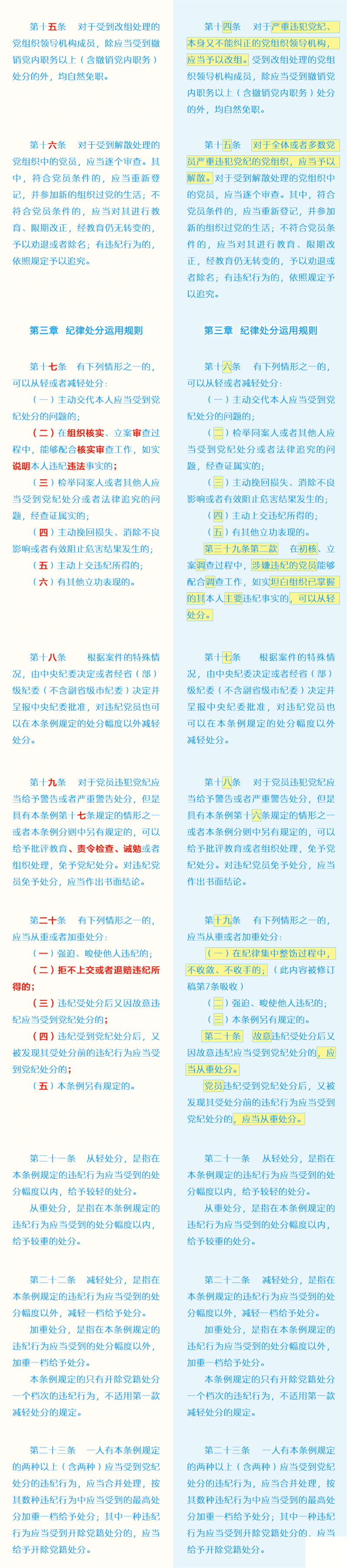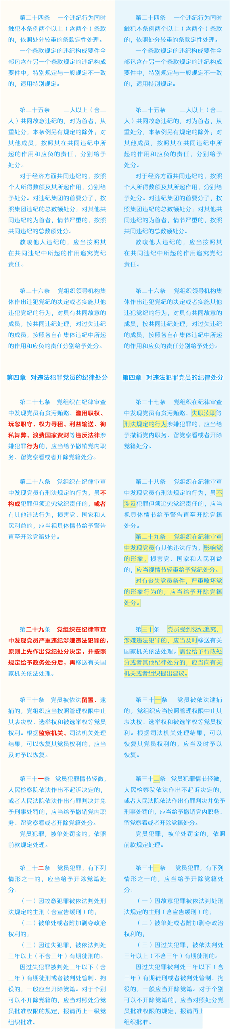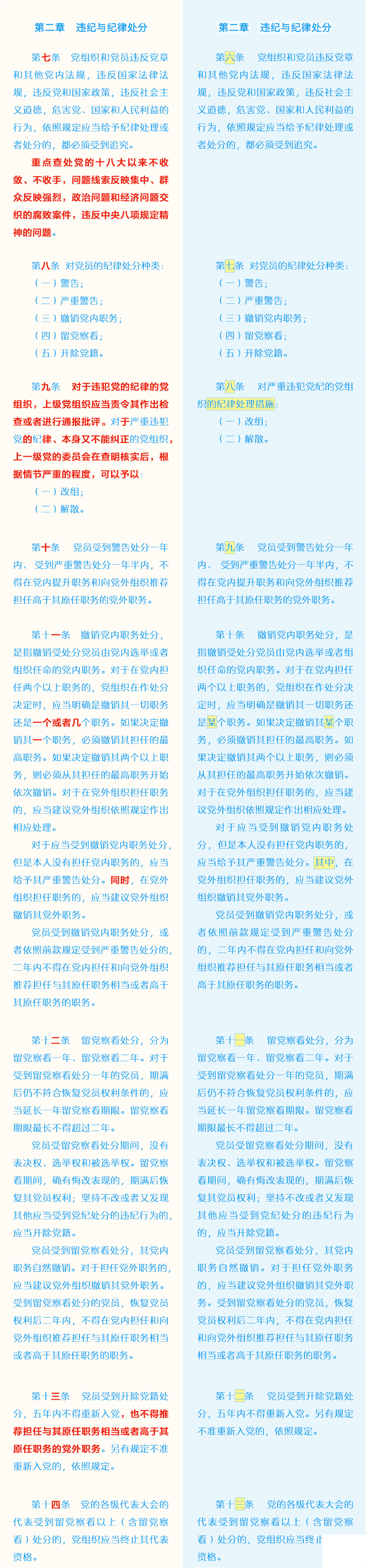 新舊《中國共產(chǎn)黨紀律處分條例》對比