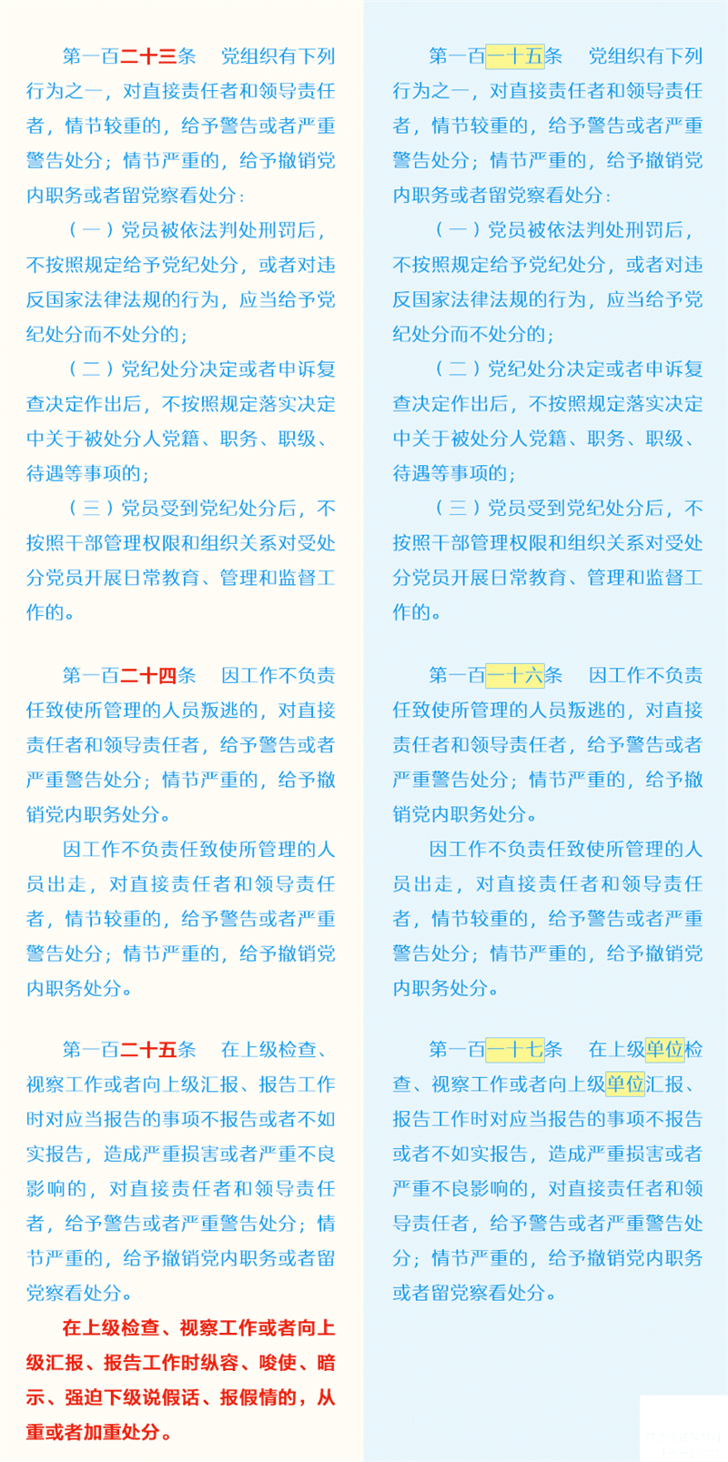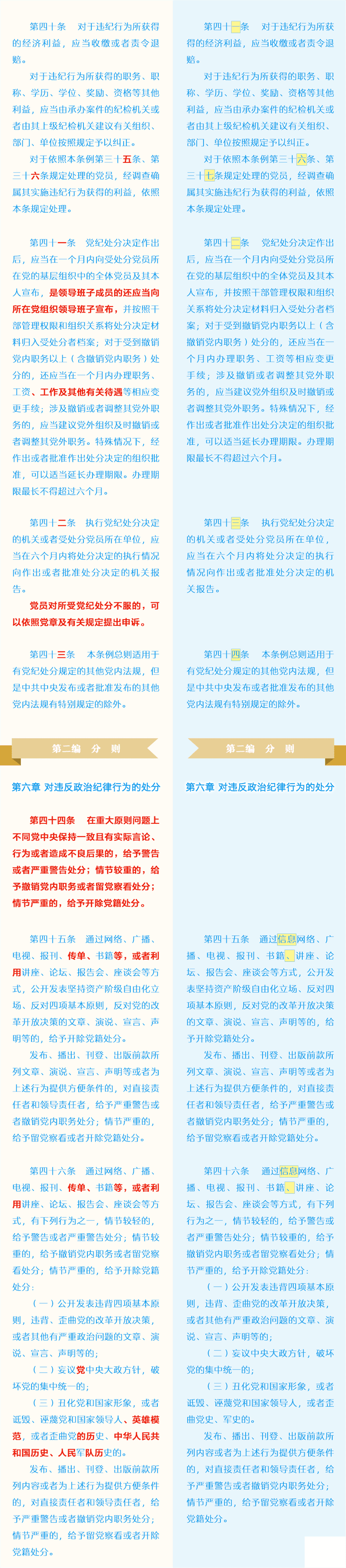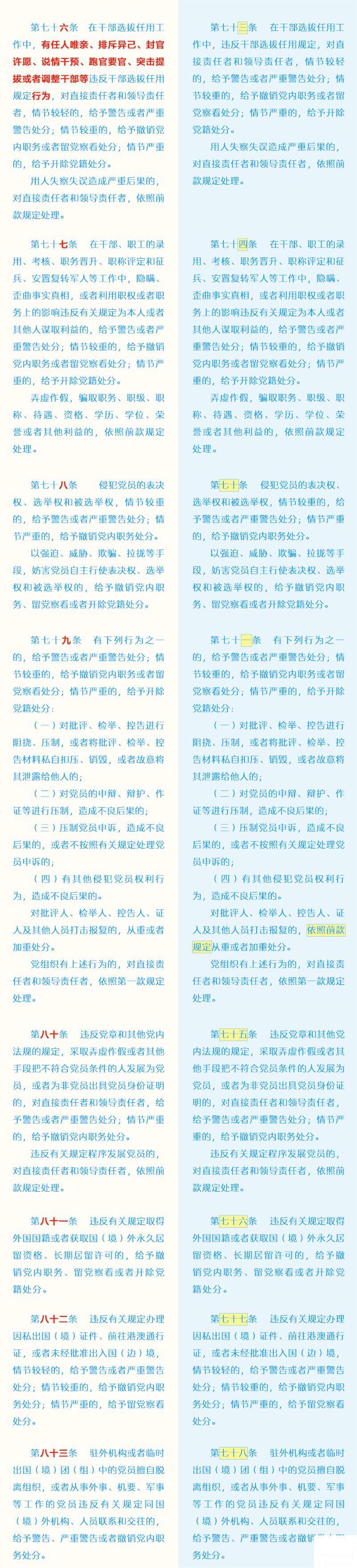 新舊《中國共產(chǎn)黨紀律處分條例》對比