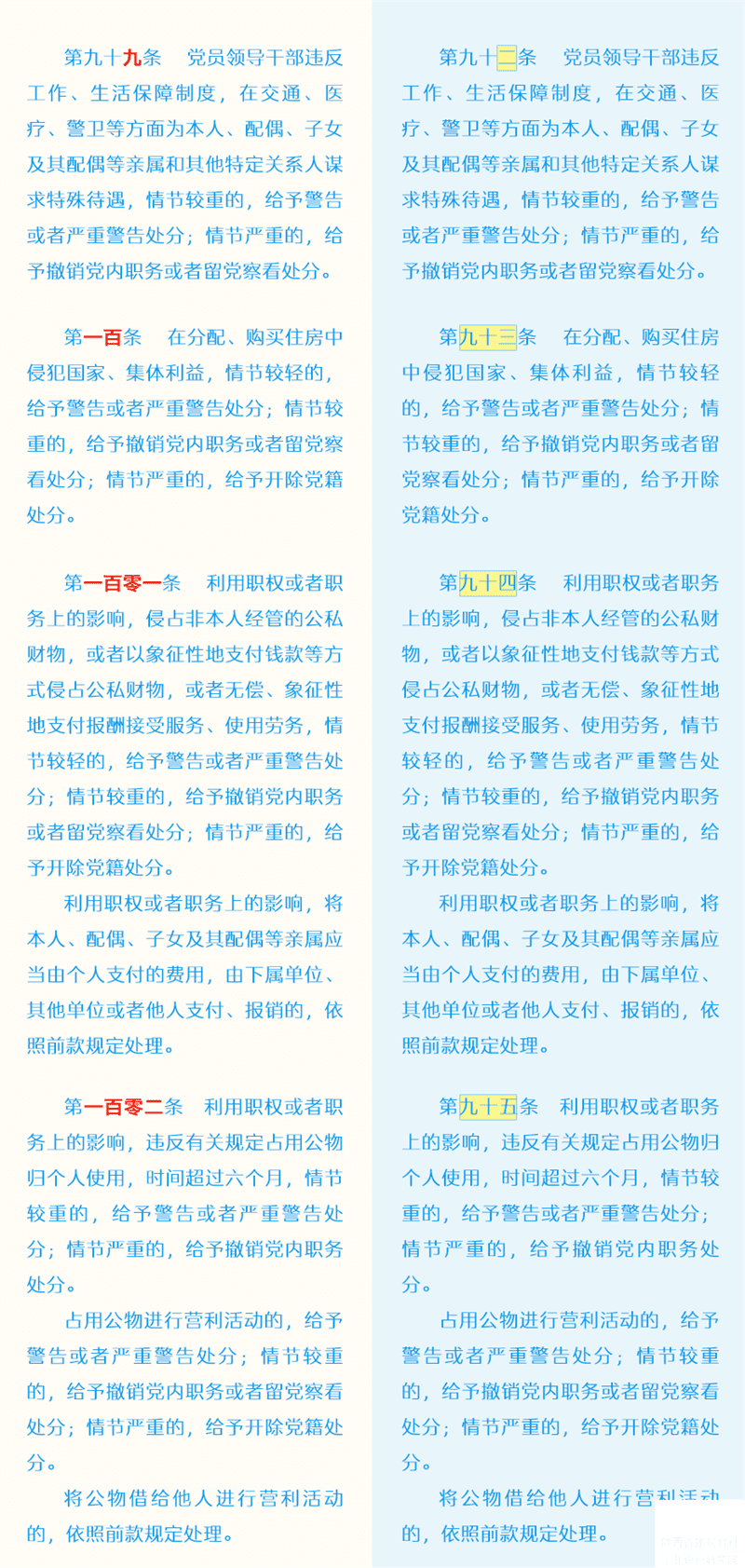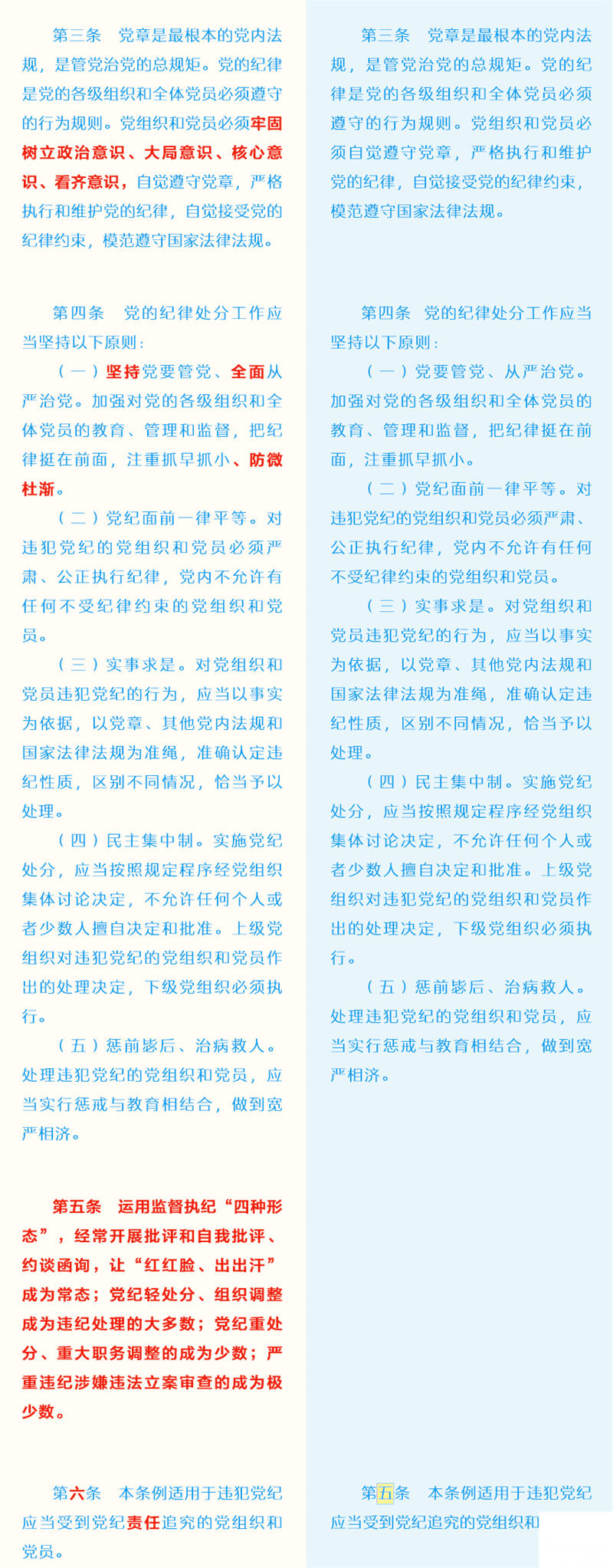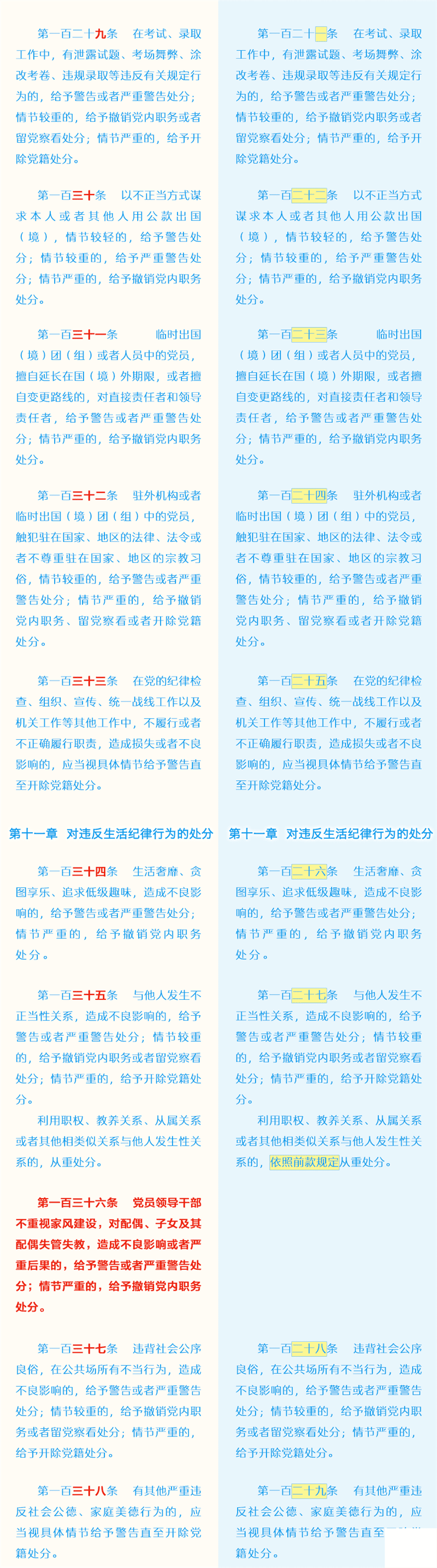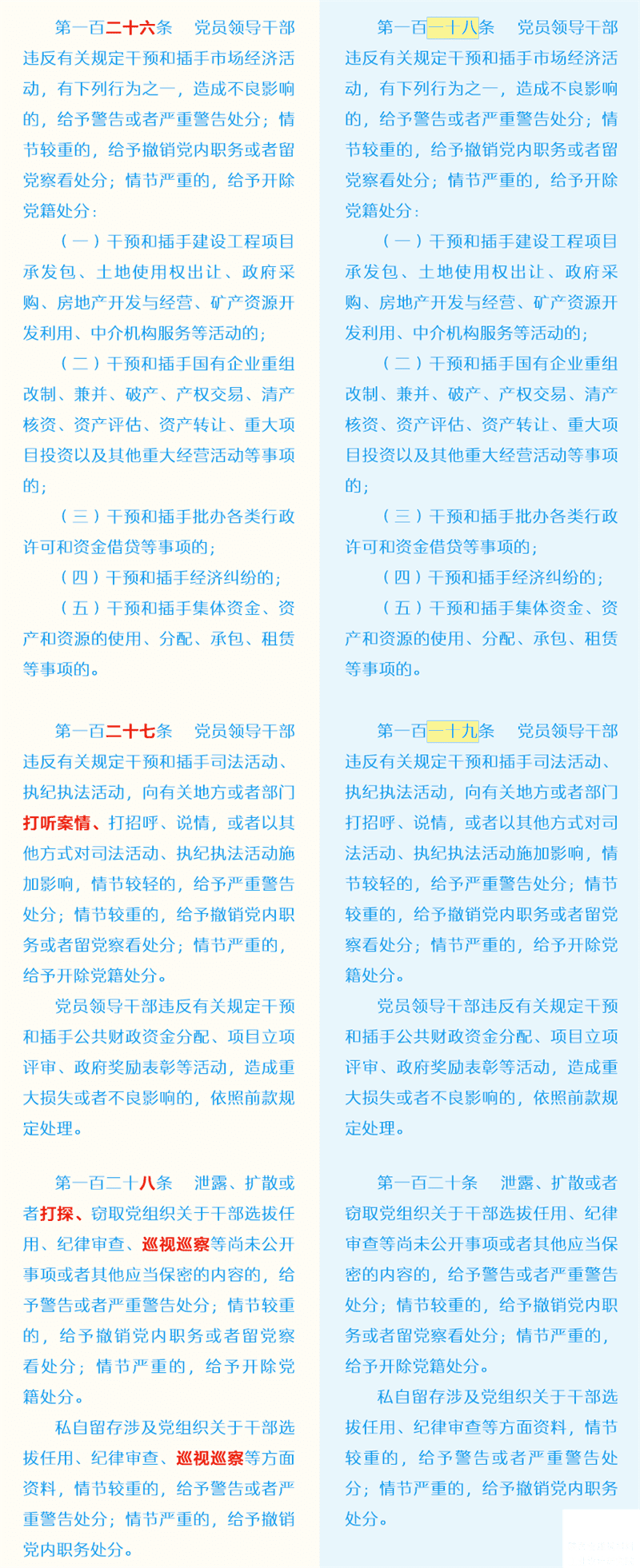 新舊《中國共產(chǎn)黨紀律處分條例》對比
