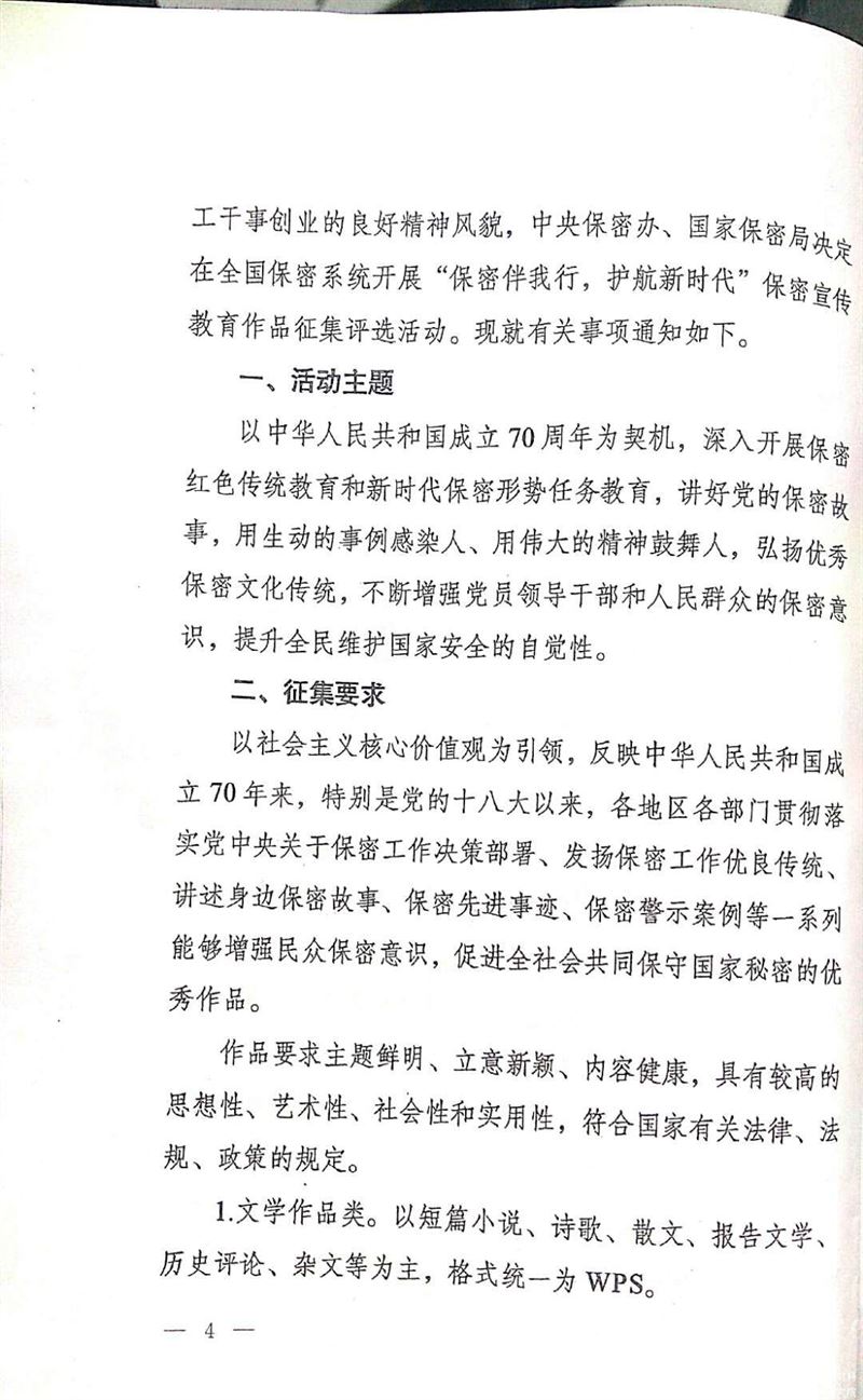 關(guān)于開(kāi)展“保密伴我行,護(hù)航新時(shí)代”宣傳教育 作品征集評(píng)選活動(dòng)的通知