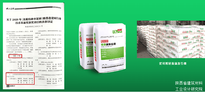 我院優(yōu)可班輕質(zhì)抹灰石膏技術(shù)與應(yīng)用榮獲陜西省建材行業(yè)技術(shù)革新獎一等獎
