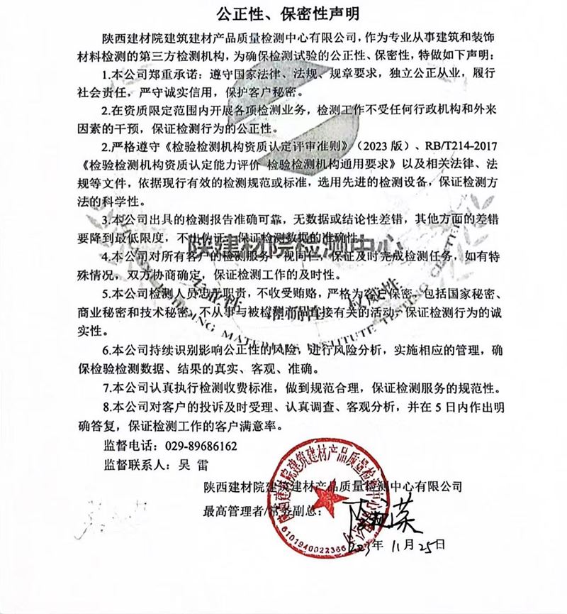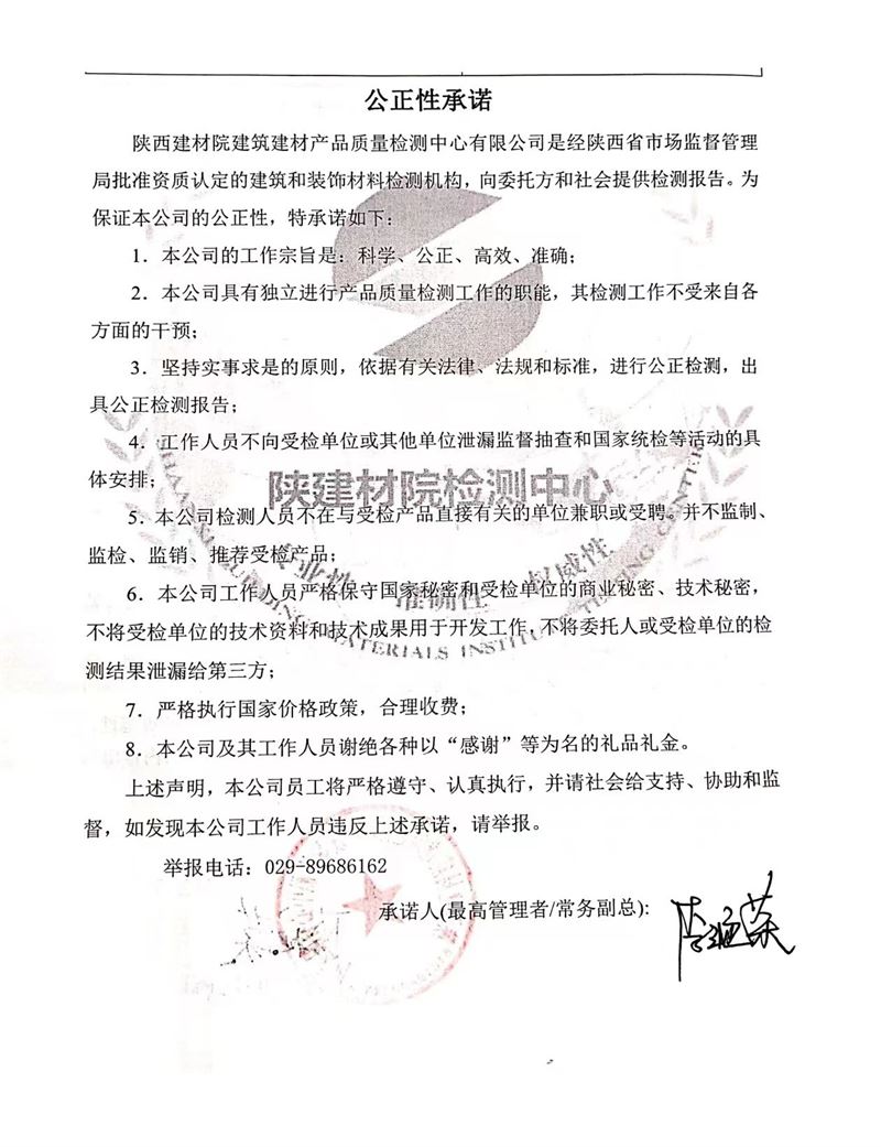 陜西建材院建筑建材產(chǎn)品質(zhì)量檢測(cè)中心有限公司公正性聲明