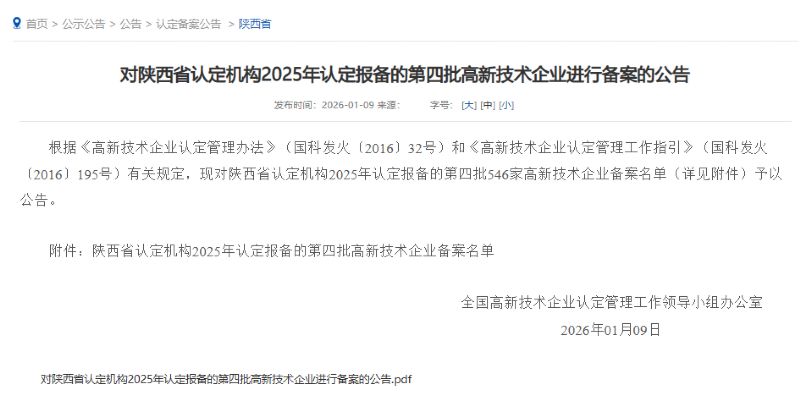 近日,全國高新技術企業(yè)認定管理工作領導小組辦公室發(fā)布《對陜西省認定機構2025年認定報備的第四批高新技術企業(yè)進行備案的公告》,我公司憑借突出的科研創(chuàng)新實力與技術成果轉化能力,成功通過高新技術企業(yè)認定。